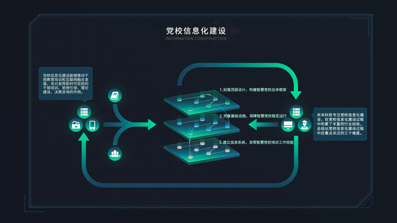 党校信息化建设能够推动干部教育培训和互联网融合发展,充分发挥新时代党校的干部培训、思想引领、理论建设、决策咨询的作用。米未科技专注党校信息化建设,服务全国多地区省市县各级党校,提供智慧党校信息化建设整体解决方案,在党校信息化建设过程中积累了丰富的行业经验,总结出党校信息化建设过程中应重点关注的四个维度。